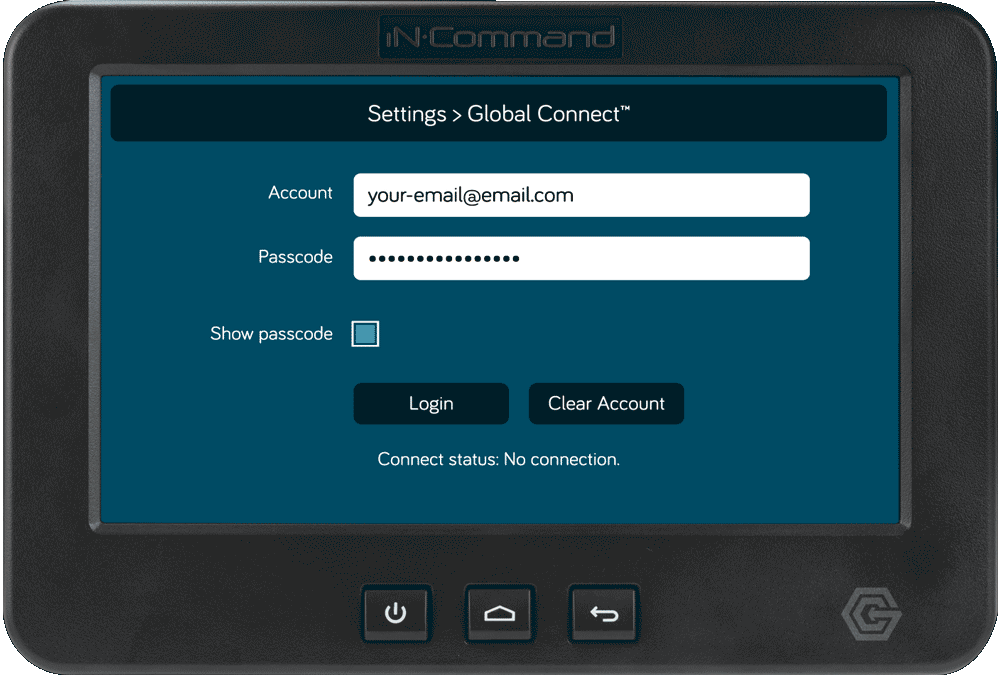 Resetting and clearing your account information for Global Connect™ cloud services from your iN•Command® Control System is a simple process. In order to do this completely, steps have to be taken on both the user side within your RV and on the side of Global Connect cloud services.