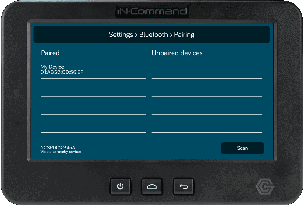 To do this, go to Settings > Bluetooth > Pairing. The DC-ID can be found in the lower left corner of the screen, as seen below.